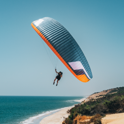Die Tragegurte und Takelage sind identisch mit einen „echten“ Gleitschirme, um realistische Bedingungen zu schaffen. Der Marlin fordert vom Schüler die richtigen Reaktionen, das die Auszubildenden später in der Lage sind mit größeren Gleitschirmen zu hantieren.