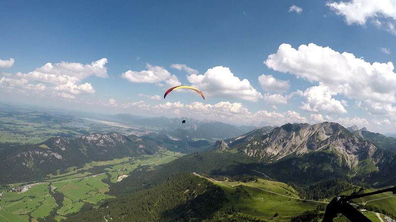 Sich bei einem Tandemflug die Welt von oben anzusehen ist ein unvergessliches Erlebnis. Einen Tandemflug könnt ihr bei uns ganz einfach hier buchen. Ihr fliegt frei wie ein Vogel über das Alpenvorland in Pfronten mit einem staatlich geprüften Tandempiloten. Die Piloten der Flugschule Pfronten fliegen überwiegend mit Tandemschirmen von Dudek: der Orca 4 ist einer der derzeit Besten auf dem Markt. Zusammen mit Tandemgurtzeugen von Sup’Air sind also die besten Voraussetzungen gegeben, um den Start bei einem Tandemflug so einfach wie möglich zu machen. Und so geht es: Zuerst bestellt ihr einen Gutschein für einen Tandemflug in unserem Shop oder holt ihn direkt in der Flugschule Pfronten ab. Anschliessend könnt ihr hier einen Termin vereinbaren. Vor dem Tandemflug erfolgt natürlich noch eine Einweisung des Passagiers durch den Tandempiloten unmittelbar vorort. Auf Wunsch kann der Tandemflug bei entsprechender Thermik gegen einen Aufpreis in Höhe von 20 € entsprechend verlängert werden.